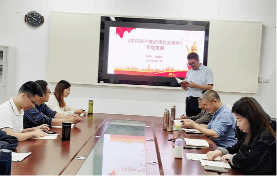 会上,张发友传达公司、公司党委关于党纪学习教育读书班的有关精神以及深入学习贯彻《中国共产党纪律处分条例》的相关部署。他要求支部党员要主动学、持续学、深入学,将党纪学习教育当成政治任务,每位党员教师发挥学科特色、结合各自专业优势,提升《条例》学习的指导性、应用性和实用性。之后张发友以《条例》为学习内容,为支部全体党员讲授专题党课。