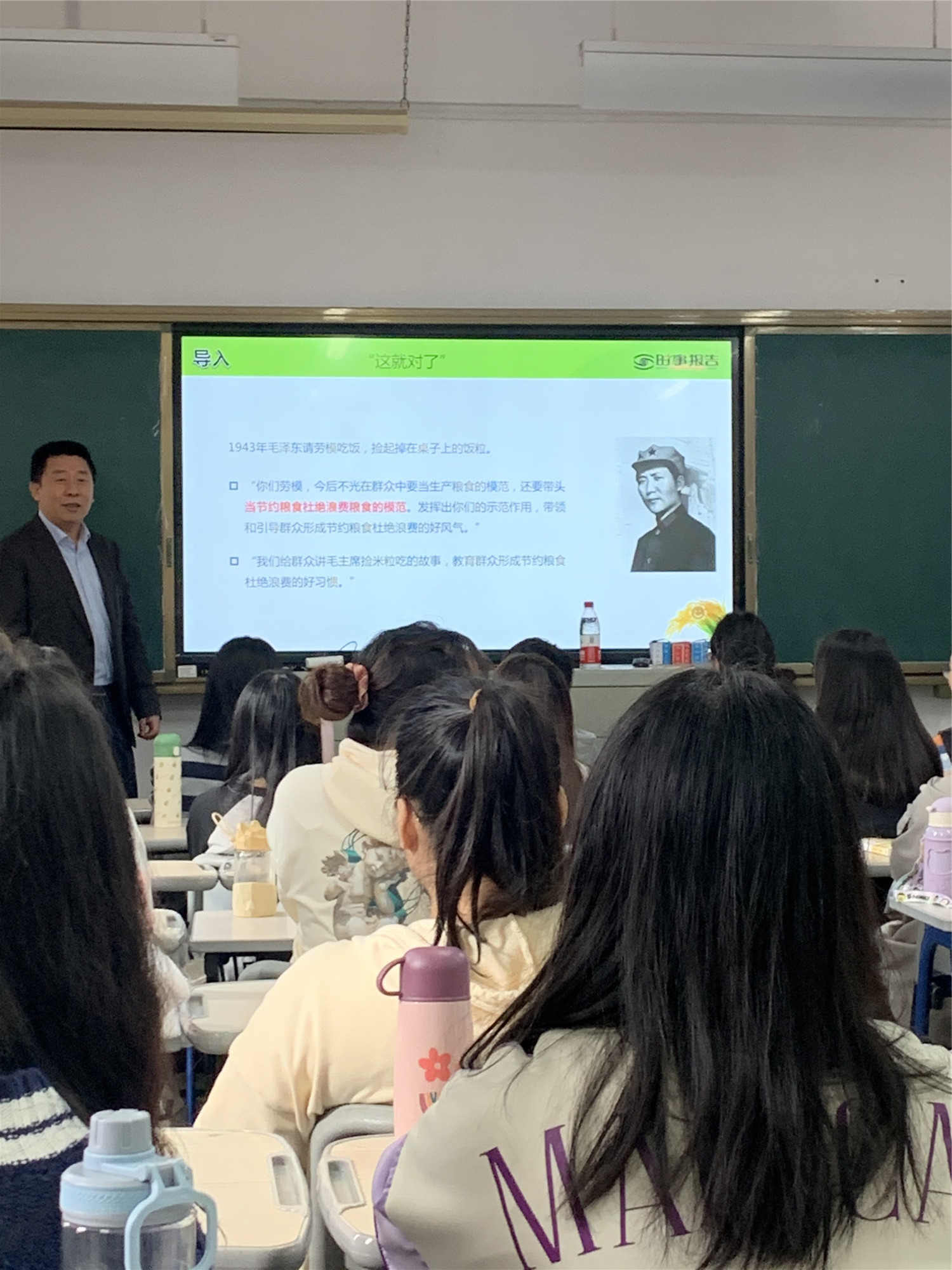 杨晓翔副董事长以“世界什么问题最大?““谁来养活中国?”等问题导入主题,阐明了马克思主义经典作家毛泽东、习近平等关于粮食安全问题的重要论述。他以翔实的数据、丰富的素材,阐述了我国保障粮食安全的重要策略:一要自力更生,形势持续向好;二要认清现状,不能轻言过关;三要系统推进,端牢中国饭碗。杨副董事长以问题为导向,运用案例分析法讲授,既有图文解说,又注重学理分析,引导员工明确“国以民为本、民以食为天”的重要性,并嘱咐员工要弘扬勤俭节约之风,让勤俭节约内化于心、外化于行。