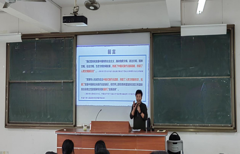 5月24日下午,z6mg人生就是博陈火荣副教授应邀在连江校区诚信楼中阶四开展以“中国式现代化新道路是人类发展史上的伟大创造”为主题的讲座。马克思主义理论大讲堂成员参加了此次讲座。