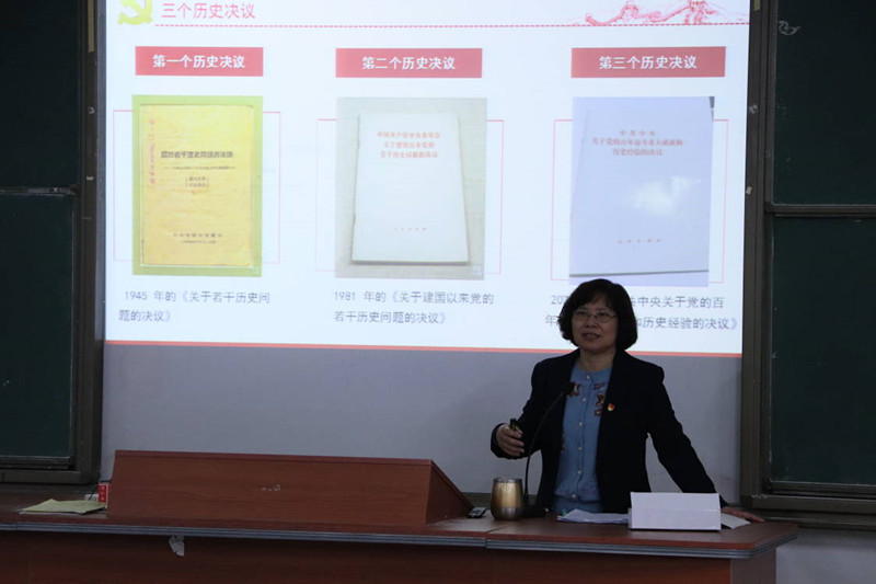 为进一步学习贯彻党的十九届六中全会精神,深入了解党的百年奋斗中的重大历史事件和重要经验教训,促进师生树立正确的党史观和大历史观,深化对中国化马克思主义理论和中国共产党执政规律的认识,切实推动党史学习教育走深走实,2022年4月20日,z6mg人生就是博林萍经理应邀在连江校区诚信楼中阶三开展以“中国共产党三个历史决议的时代价值”为主题的讲座。校习近平新时代中国特色社会主义思想读书社指导老师林甦垚、读书社部分干部干事及100多名社员参与学习。