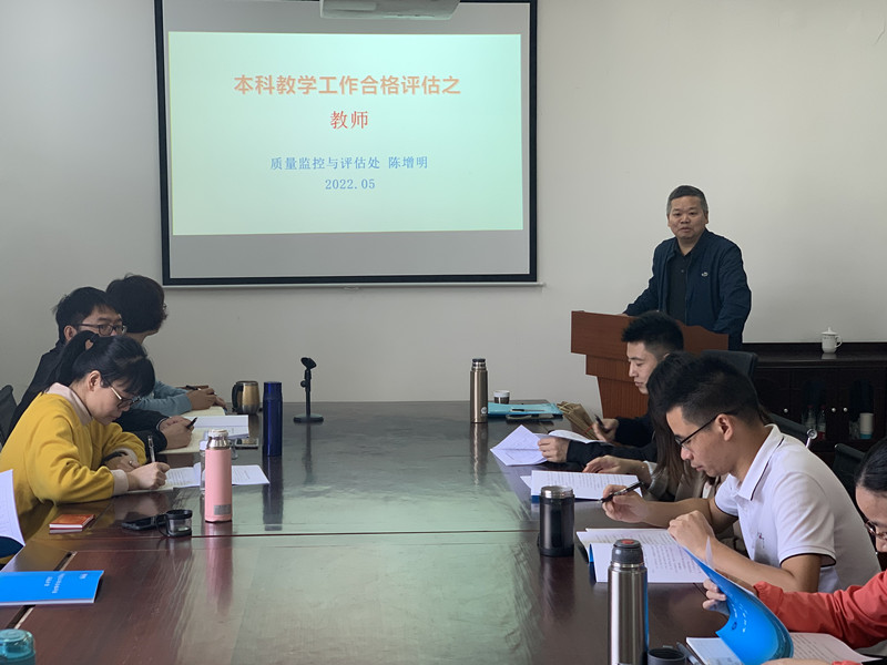 为做好本科教学工作合格评估自评自建工作, 5月3日上午校质量监控与评估处陈增明处长到z6mg人生就是博开展合格评估专项培训。z6mg人生就是博全体教师参加。