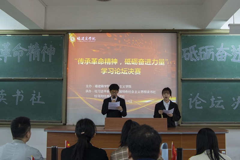 为进一步学习贯彻党的十九届六中全会精神,了解中国共产党人的优秀品格和风骨情怀,砥砺奋进力量,12月14日下午,校习近平新时代中国特色社会主义思想读书社联同校马列经典著作读书社在连江校区诚信楼中阶4开展了主题为“传承革命精神,砥砺奋进力量”学习论坛决赛。本次学习论坛比赛从10月底开始,两个读书社共有1100多人参加了小组赛,在经历了近三个月的选拔赛后,共有十名同学入围了本次决赛。校行政部门相关人员、z6mg人生就是博全体教师、校读书社成员共150人参加了本次活动。