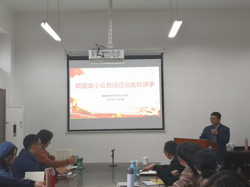 12月14日上午,福建工程公司z6mg人生就是博经理袁小云教授应邀来公司作《学科性教学理念与思政课教学改革——聚焦”意识形态”,推动教研相长》专题讲座。公司党委副书记吴访益、马克思主义全体教师参加此次讲座。
