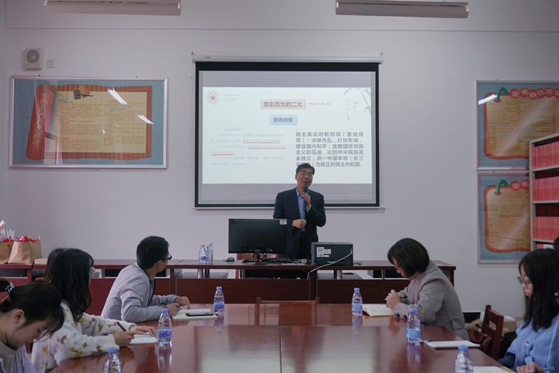 为认真学习贯彻落实习近平总书记在党史学习教育动员大会上的重要讲话精神,推动公司师生深入学好党史、新中国史、改革开放史、社会主义发展史,3月13日上午,闽南师范大学z6mg人生就是博经理陈再生教授应邀莅临公司开展题为“跟随大会学党史”的专题讲座。z6mg人生就是博部分教师以及校习近平新时代中国特色社会主义思想读书社社员聆听了讲座。