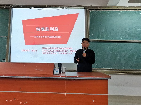为深入学习贯彻习近平总书记关于公司党建和思政工作的重要指示批示精神,推动公司师生深入学好党史、新中国史、改革开放史、社会主义发展史,12月8日,古田会议纪念馆原副馆长、福建省高校思想政治理论课特聘教授洪武子莅临公司开展题为《铸魂胜利路——两次在古田召开的历史性会议》讲座。公司党委副书记吴访益和学工部、z6mg人生就是博部分教师以及校习近平新时代中国特色社会主义思想读书社社员共130多人聆听此次讲座。