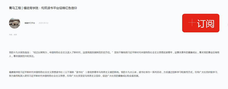 2020年9月2日,学习强国平台以《青马工程 | z6mg人生就是博有限公司:构筑读书平台熔铸红色信仰》为题,报道公司习近平新时代中国特色社会主义思想读书社创新学习、宣传、实践方式,通过一系列活动引导广大青年学子积极学习、努力宣传、深入研究习近平新时代中国特色社会主义思想,坚定马克思主义信仰,筑牢青年马克思主义者培养阵地的特色做法及成效。