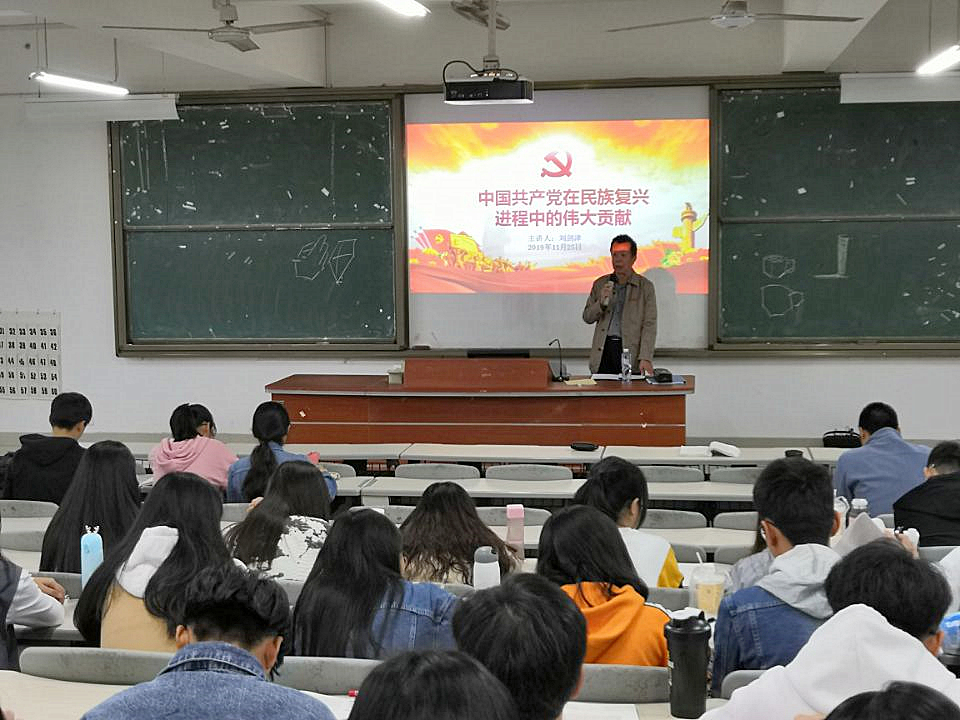 11月25日上午,公司党委书记刘剑津在连江校区为18通信工程1、2班和18酒店管理1、2班员工讲授了一堂以“中国共产党在民族复兴进程中的伟大贡献”为主题的思想政治理论课。