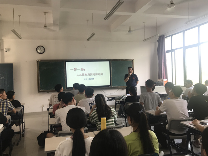 6月25日下午,黄斌董事长在连江校区诚信楼,为18通信工程员工讲授了一堂《一带一路:从总体布局到走深走实》思想政治理论课。
