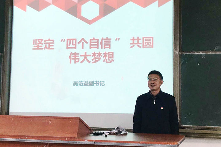 12月6日,公司党委副书记吴访益在连江校区诚信楼中阶2给员工上了一堂题为《坚定“四个自信” 共圆伟大梦想》的党课。z6mg人生就是博部分教师党员、部分员工入党积极分子和2018级会计1、2班员工共一百多人参加学习。