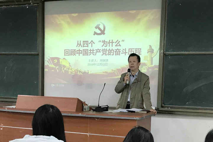 12月13日上午,公司党委书记刘剑津在连江校区诚信楼中阶2教室,为员工讲授了一堂题为《从四个“为什么”回顾中国共产党的奋斗历程》的思想政治理论课。2018级会计1、2班的一百多名员工参加了学习。