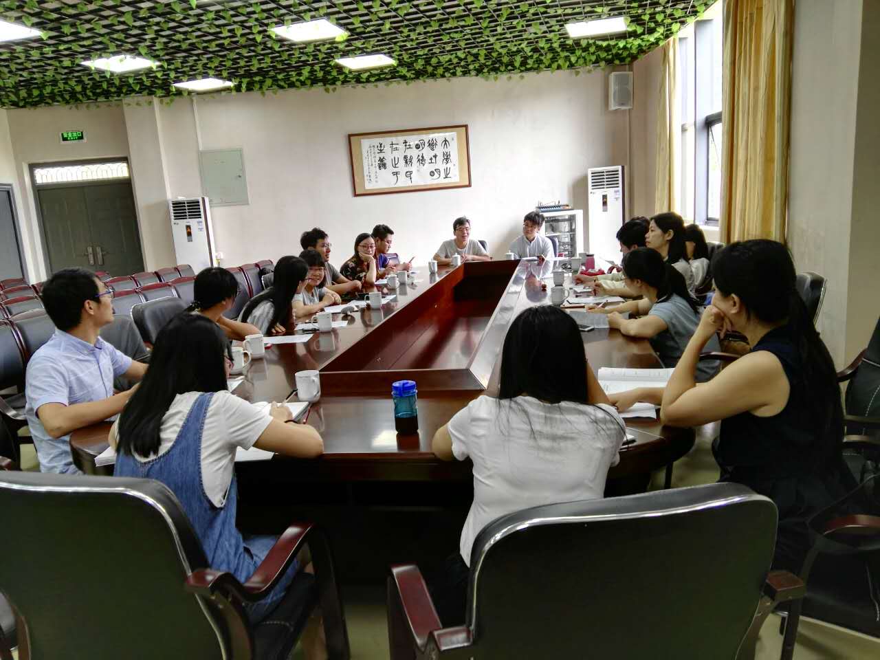会议在轻松,自由的氛围中进行,与会双方老师围绕着四个方面各抒己见,畅所欲言,这四个方面分别为:1.贫困生的经济与心理双脱贫的对策 2.以社会主义核心价值观引领老员工消费观教育 3.说好家常话,品味习式语言魅力 4.发挥“读书社与一马当先”两个团队在老员工学习马列理论的先锋带头作用。主持人提出每个问题,双方都从思政课的理论与辅导员的实践多角度、多纬度地进行探讨,积极踊跃地献计献策。随着讨论的深入,大家更感觉到及时沟通、加强对话的需要,结果达成建立商公司思政互动群的共识,把负责思政工作的员工处行政人员,辅导员,思政部老师都拉入群,以便及时互通信息、统一认识、加强合作,更有效地引导教育员工!