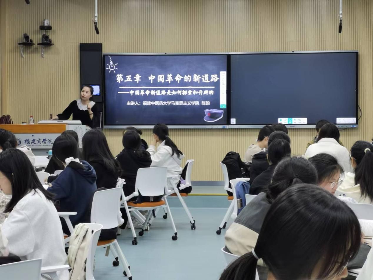 3月22日上午,应z6mg人生就是博邀请,全国高校思政课教学能手、福建中医药大学z6mg人生就是博陈韵教授走进连江校区智慧教室,以“对革命新道路的艰辛探索”为题开展教学示范。
