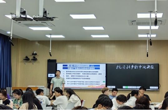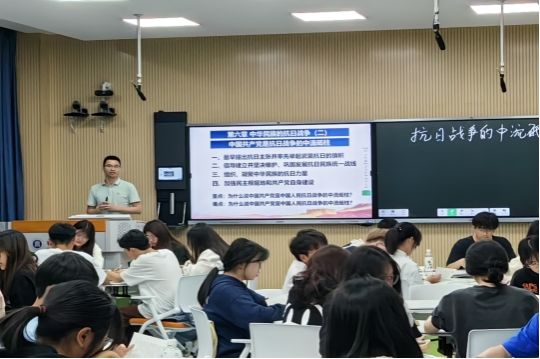 5月10日下午,z6mg人生就是博中国近现代史纲要教研室叶陈钦老师在自强楼511智慧教室开展以“抗日战争的中流砥柱”为主题的示范型观摩课,授课班级员工、公司教师共60多人参加教研活动。