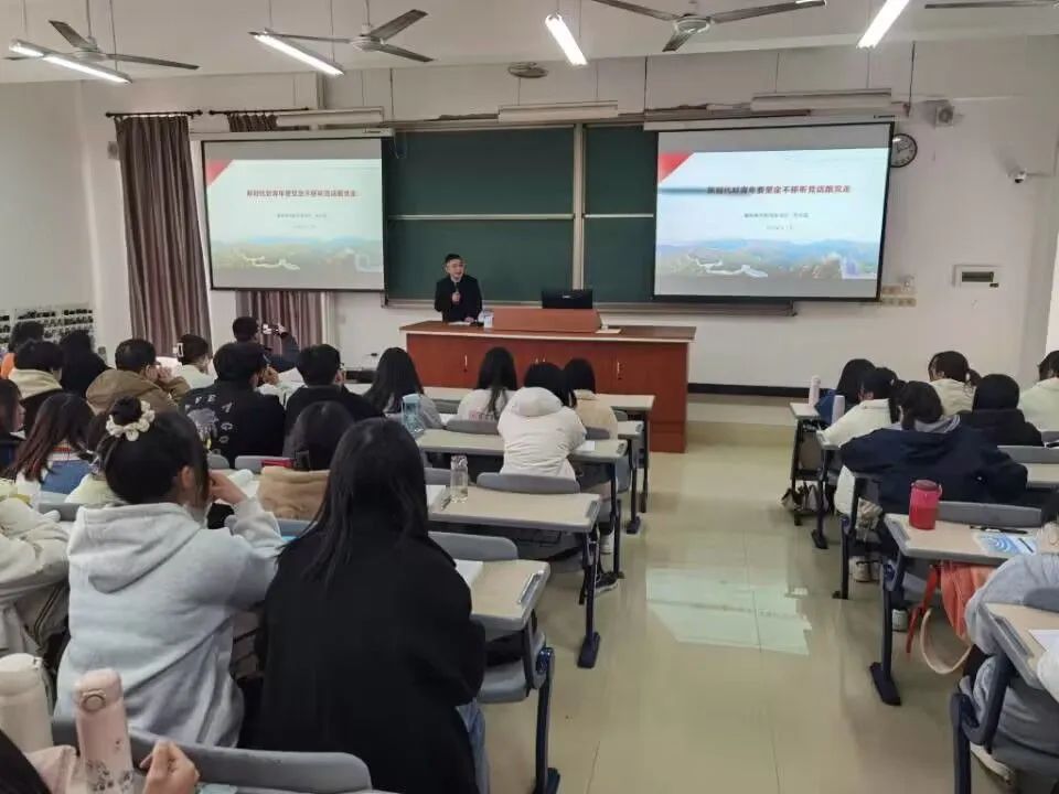 2月15日上午,福建商公司党委书记吴访益结合党的二十大精神,围绕“新时代好青年要坚定不移听党话跟党走”主题给2022财务管理1、2班全体员工上“开学第一课”,部分思政课教师参加此次讲座。