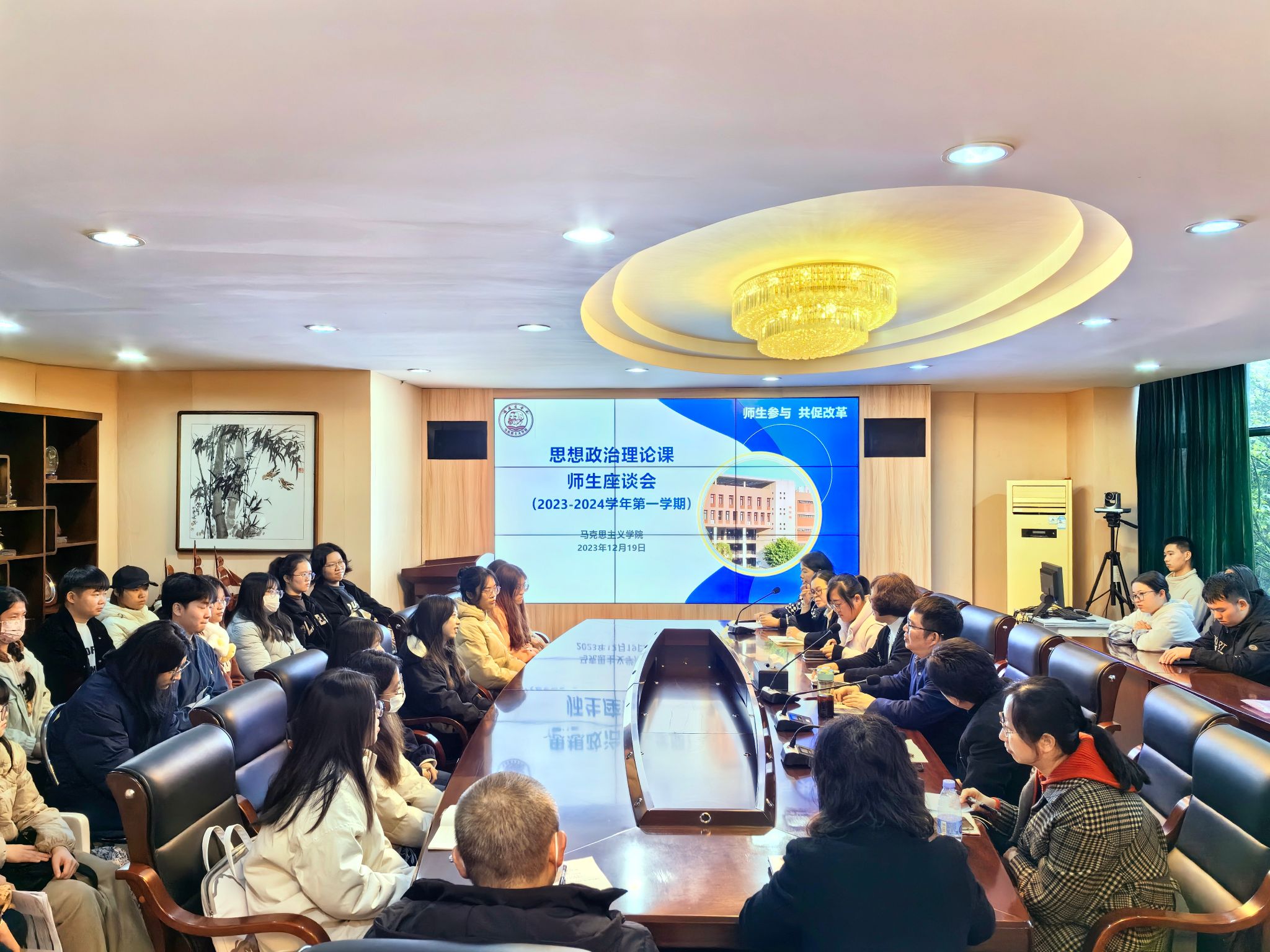 为更好促进思政课的教学和改革,提升员工在思政课中的获得感和对思政课的认同,12月19日下午,公司在马尾校区召开2023-2024第一学期思想政治理论课师生座谈会。校教务处、质量监控与评估处有关人员,z6mg人生就是博教师代表,马尾校区员工代表共40人参加了会议。