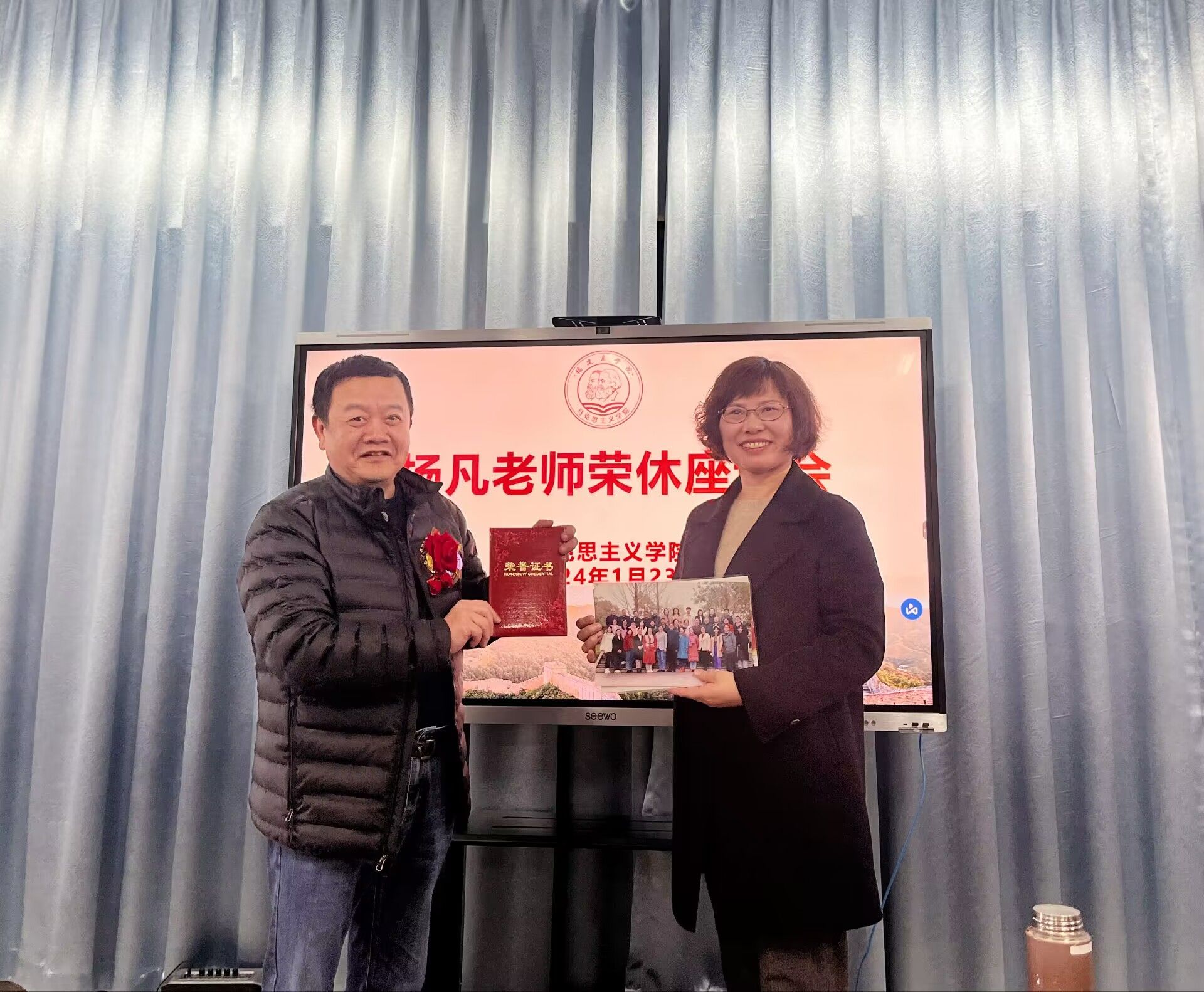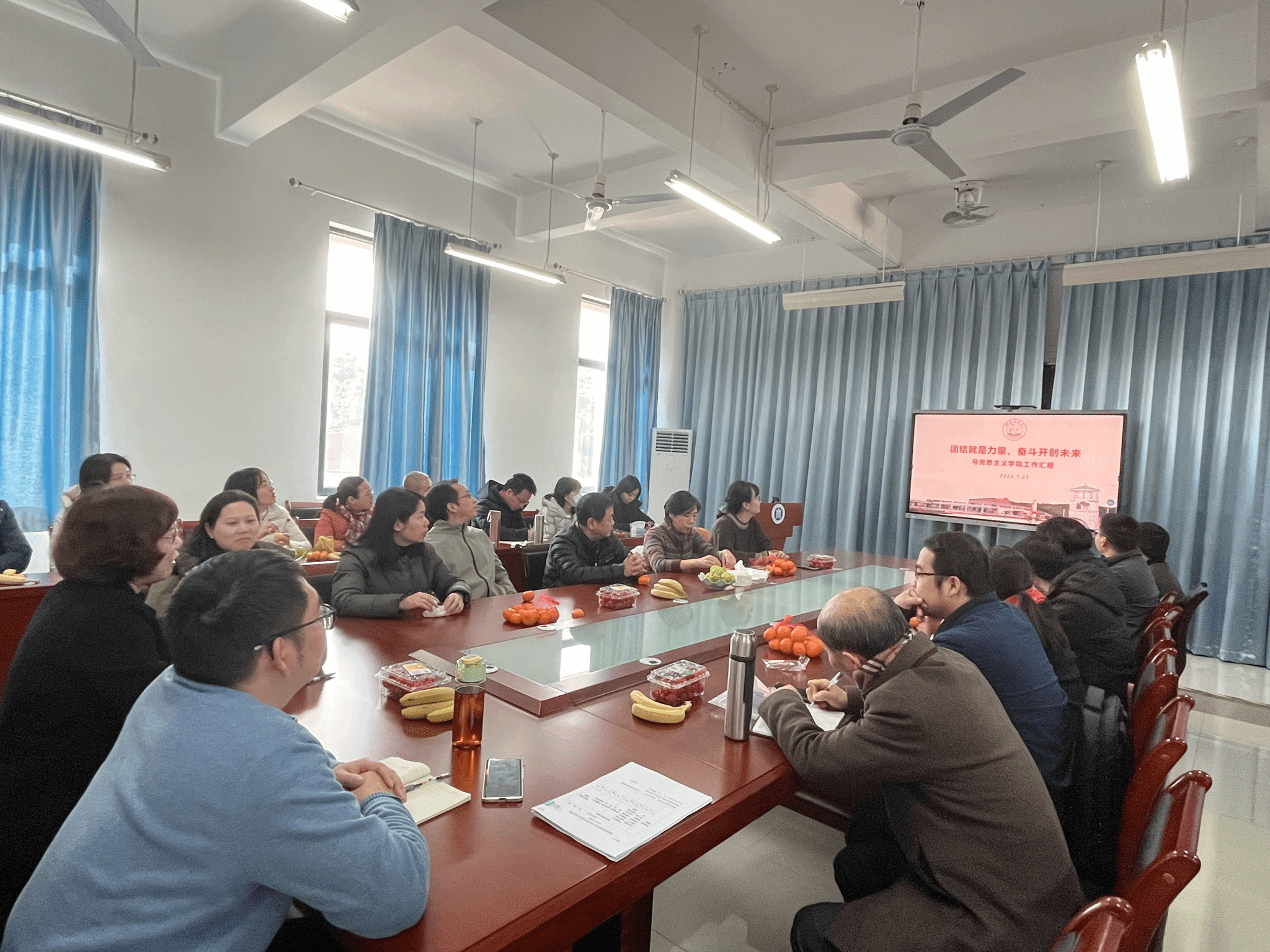 2024年1月23日下午,公司召开本学期期末工作安排会议暨杨凡老师荣休欢送会。z6mg人生就是博全体教师参加。