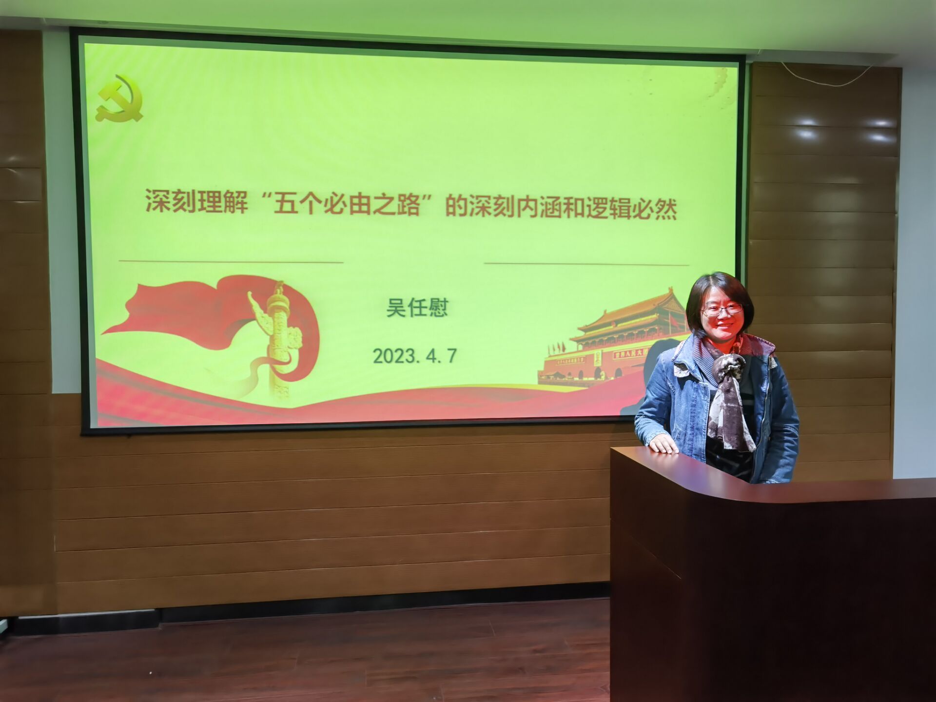 4月7日,z6mg人生就是博邀请福建医科大学z6mg人生就是博经理吴仁慰教授给马院全体教师做关于《深刻理解“五个必由之路”的深刻内涵、内在逻辑及时代价值》讲座。吴教授从深刻内涵、内在逻辑及时代价值三个层面,深刻分析五个必由之路”重要论断的基本内涵,指出“五个必由之路”是我们党对新时代奋进历程的经验总结,是新时代党的理论创新成果的进一步丰富,是新时代中国共产党对“三大规律”的深刻认识。并就如何在前进的道路遵循“五个必由之路”,提出要坚持党的全面领导、高举中国特色社会主义伟大旗帜、大力弘扬团结奋斗精神、全面贯彻新发展理念、深入推进全面从严治党。
