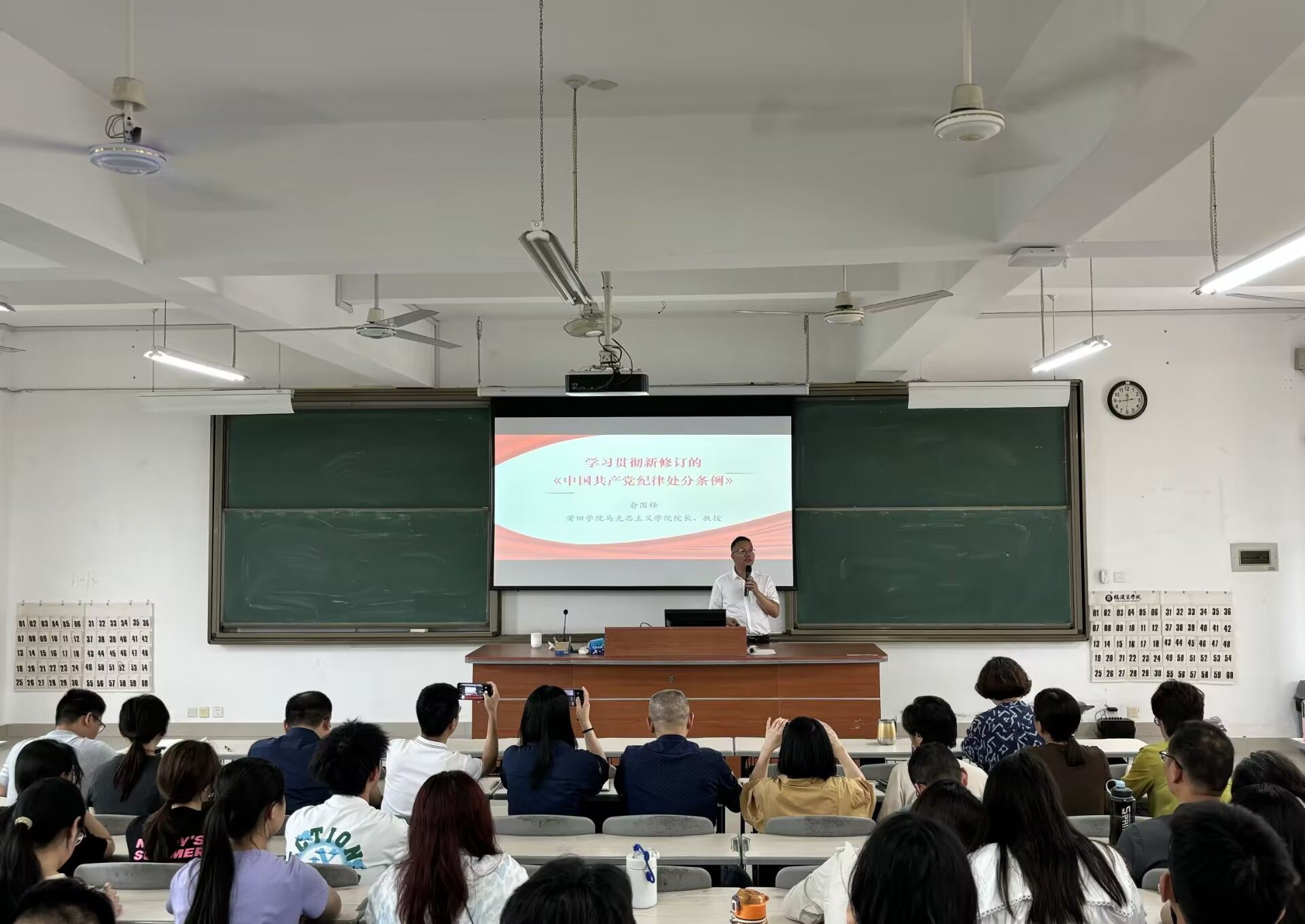 为深入学习贯彻修订后的《中国共产党纪律处分条例》,5月7日下午,z6mg人生就是博、旅游与休闲管理公司联合举办了“学习贯彻新修订的《中国共产党纪律处分条例》(以下简称《条例》)”专题讲座,讲座由莆田公司马院经理俞国锋教授做报告。z6mg人生就是博、旅游与休闲管理公司全体党员教师、部分员工党员及习近平新时代中国特色社会主义思想读书社社员共100多人参加本次讲座。