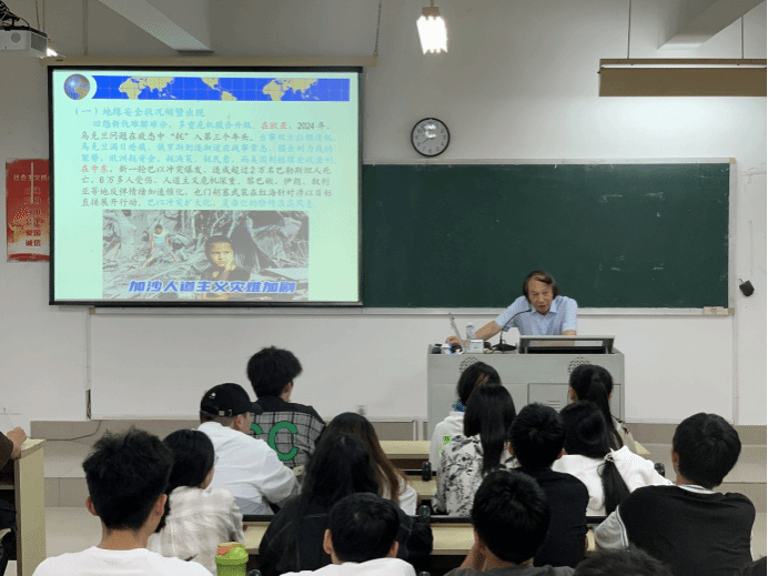 6月6日晚7点30分,福建江夏公司z6mg人生就是博郭健彪教授应邀到公司马尾校区远志楼T3教室作题为“当前国际局势与中国式现代化”的专题讲座,校马列经典著作读书社社员、校青马工程班学员共计90多人聆听了讲座。