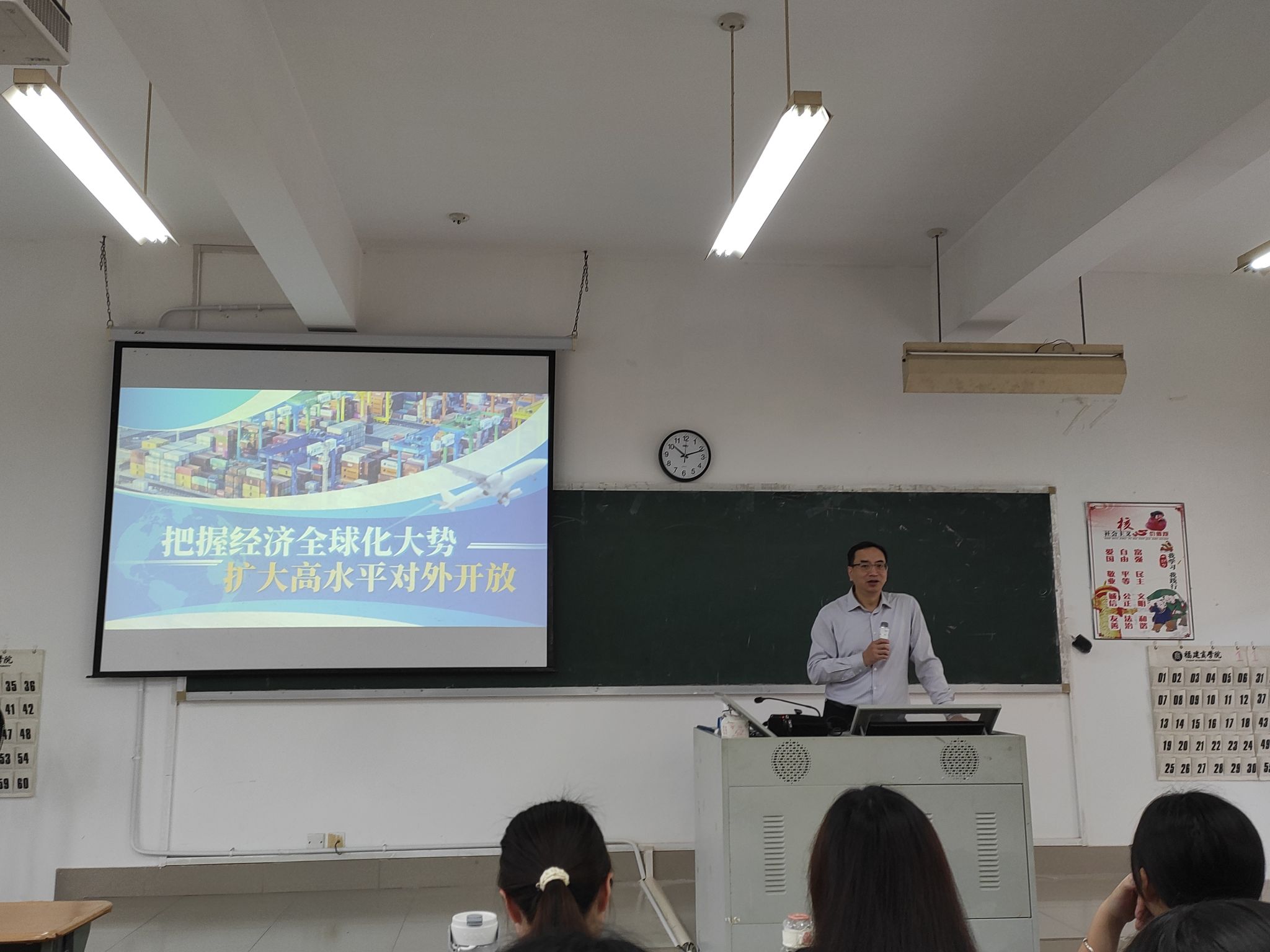 6月6日上午,公司党委副书记蒲文庆于马尾校区远志楼T2室,为2023级供应链管理1、2班员工讲授题为《把握经济全球化大势 扩大高水平对外开放》的思政课。