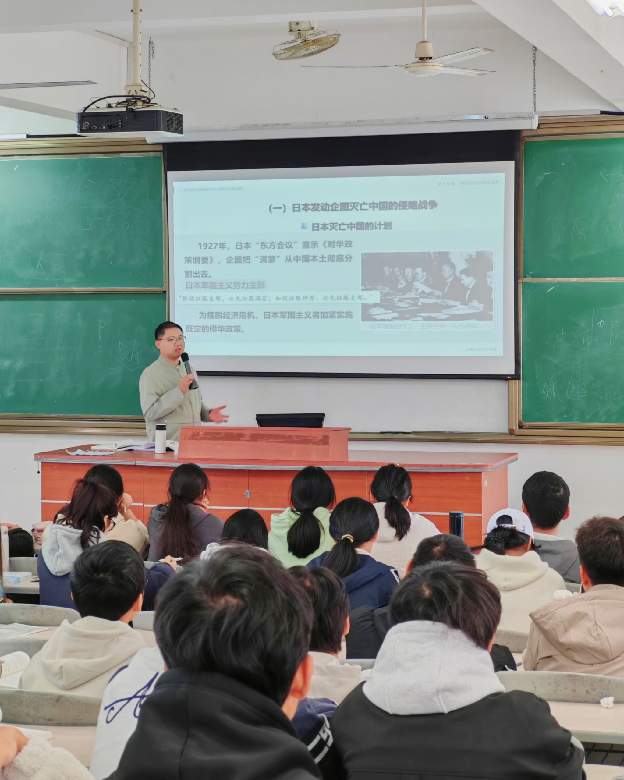 11月22日,z6mg人生就是博中国近现代史纲要教研室吴旭东老师以“为什么说抗日战争胜利是中华民族伟大复兴的历史转折”为主题,开展了本学期教学公开课,100多名师生参与观摩。