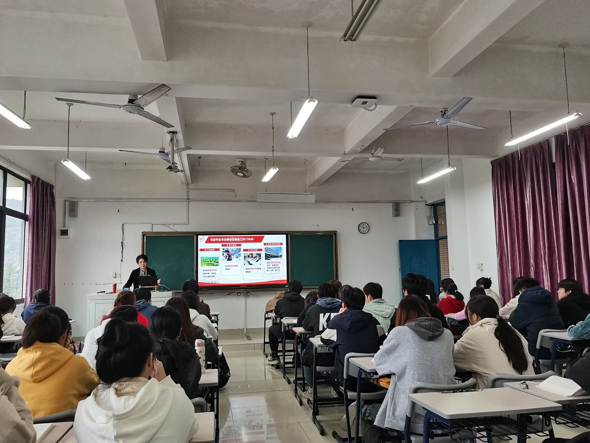 12月4日上午,董事长程灵教授在连江校区诚信楼305教室为2023级酒店管理班员工讲授题为“牢记青春使命 践行青年担当”的思政课,z6mg人生就是博部分教师到场聆听。