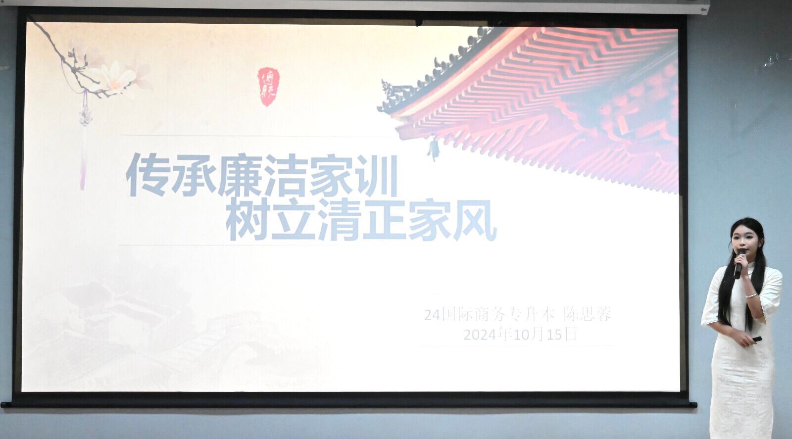 国际经贸公司举办“传廉洁家训·树清正家风”主题演讲比赛。同学们讲述着林则徐、曾国藩等一个个廉洁家风的故事,加深了对廉洁家训、清正家风的理解,感受到优良家风家训带来的正能量。大家纷纷表示,要从自身做起,传承良好家风,做一名新时代的社会主义建设者。