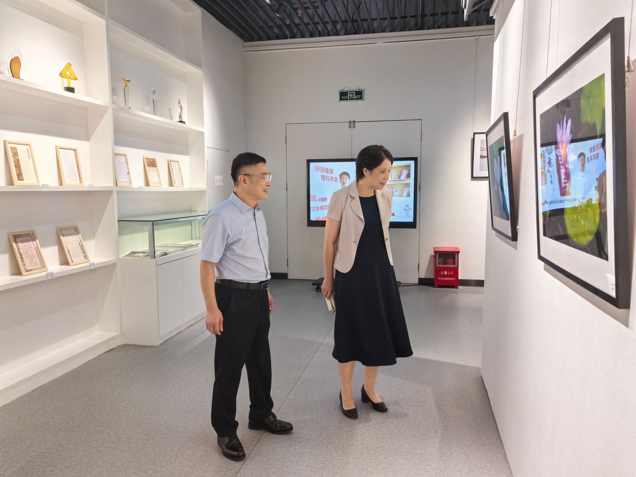 图为公司党委书记吴访益、董事长程灵参观廉洁文化作品展