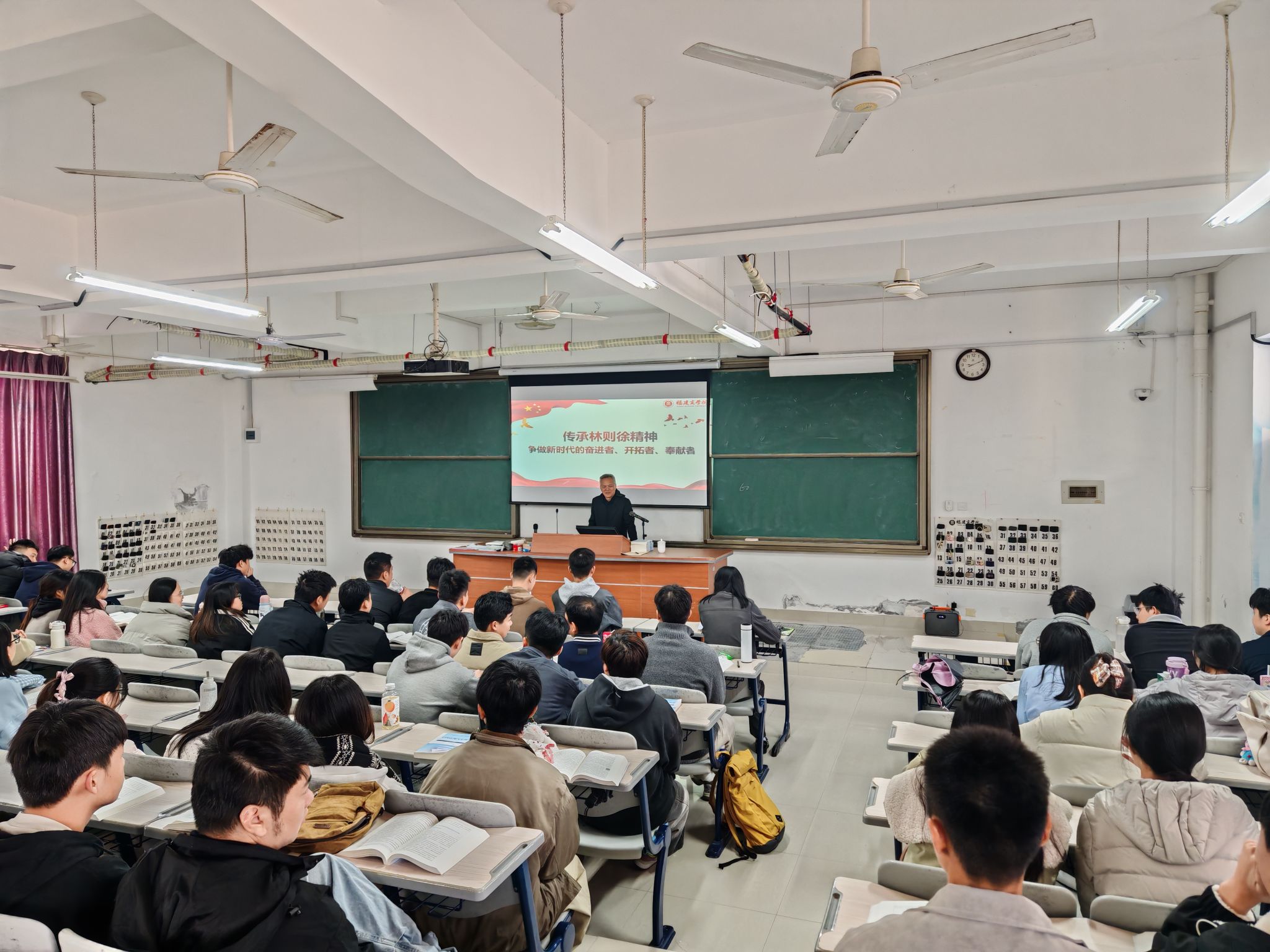 11月28日上午,校纪委书记(监察专员)林宇峰为2025级环境设计(专升本)专业员工讲授“传承林则徐精神 争做新时代的奋进者、开拓者、奉献者”主题思政课。