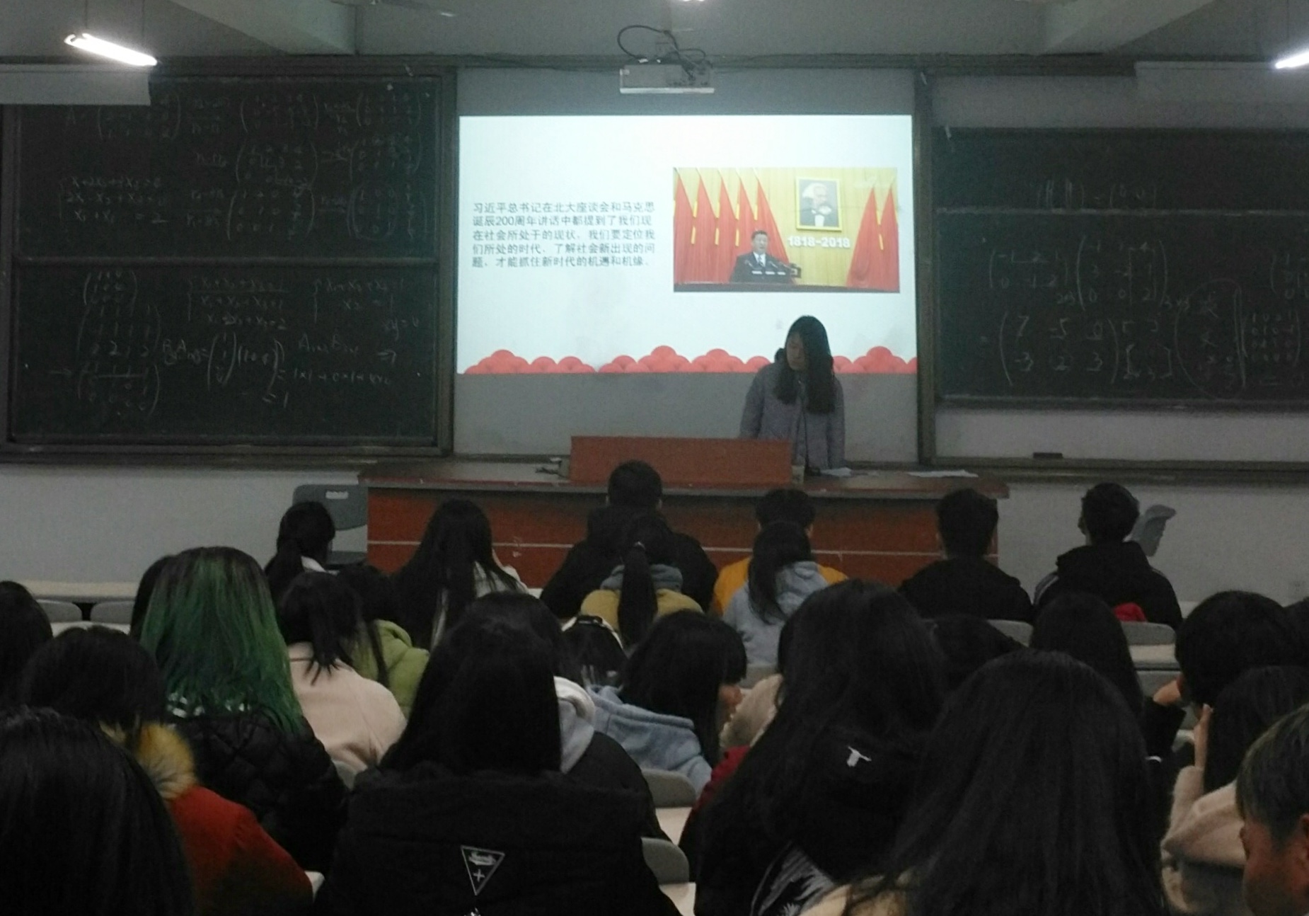 2019年1月6日晚,z6mg人生就是博有限公司习近平新时代中国特色社会主义思想读书社老员工宣讲小分队于连江校区诚信楼中阶二教室开展题为“乘时代春风,放飞青春梦想”的宣讲会。本次活动由读书社骨干成员陈舒睿、韦雨晨两位同学为公司心理委员会与校自律会近80名同学进行宣讲。
