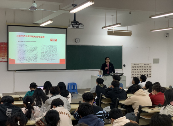 阮晓莺教授从“习近平法治思想的形成和发展”﹑“习近平法治思想的福建实践”﹑“习近平法治思想的深刻内涵”等三个方面,充分介绍了习近平法治思想的形成发展过程,生动展现了习近平法治思想的福建实践,系统阐述了习近平法治思想的科学体系和丰富内涵,着重指出了深刻认识习近平法治思想的重大意义。讲座中,阮教授还阐明学深悟透习近平法治思想必须做到“十一个坚持”、“八个深刻把握”,积极引导在场师生要以习近平法治思想为指导,坚定不移走中国特色社会主义法治道路。