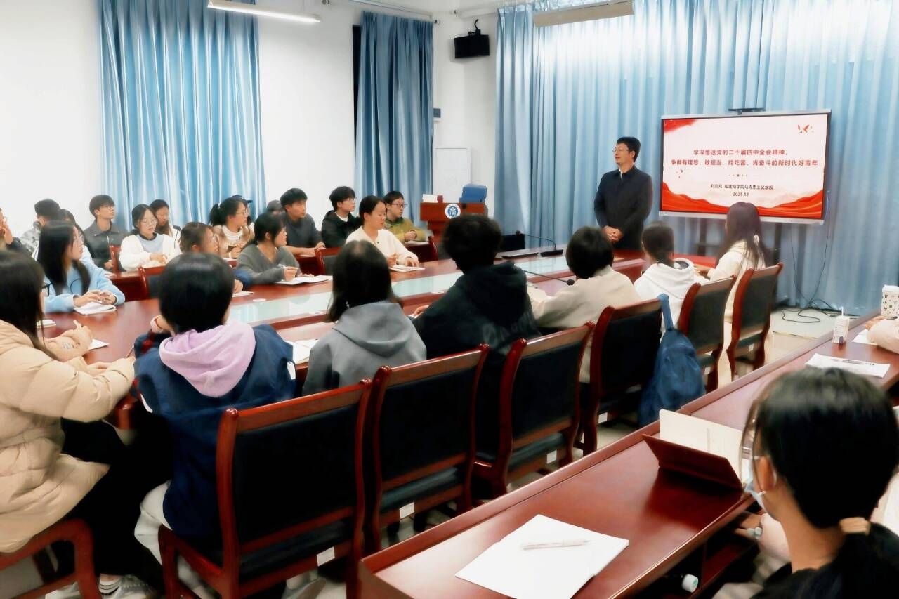 12月4日晚,z6mg人生就是博党委书记刘亮元为学校习近平新时代中国特色社会主义思想读书社员代表作“学深悟透党的二十届四中全会精神,争做有理想、敢担当、能吃苦、肯奋斗的新时代好青年”专题宣讲。
