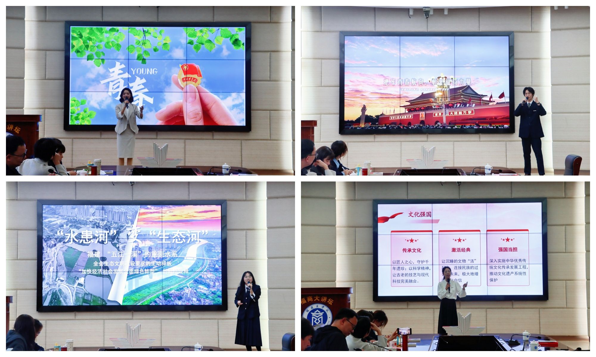 决赛中,参赛选手们紧扣党的二十届四中全会精神,结合PPT演示和案例解析,用青春的语言诠释对国家发展蓝图的理解和新时代青年在强国建设、民族复兴新征程上的思考与担当,现场氛围热烈。决赛最终评选出特等奖一名,一等奖二名、二等奖四名、三等奖四名。
