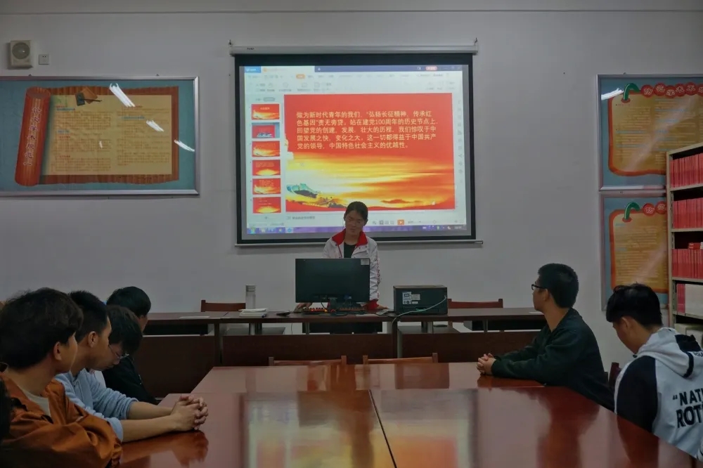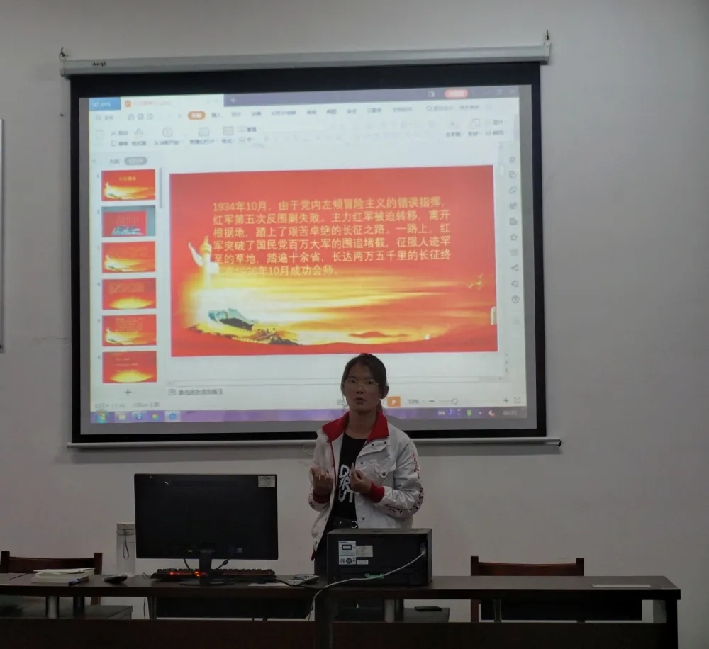 为进一步在青年老员工中深入学习贯彻习近平新时代中国特色社会主义思想,特别是深入学习领会党的十九届六中全会精神,理解中国共产党在百年奋斗中取得的伟大成就和历史经验,宣传中国共产党在百年奋斗中构建的中国共产党人的精神谱系,传承中国共产党人在中华民族伟大复兴征程中体现出的爱国情怀、高尚品格和精神风骨,汲取奋进力量,2021年11月22日下午,校读书社曹海艳同学在自强楼读书社活动室开展了题为“弘扬长征精神,传承红色基因”的宣讲活动,分享了自己的学习心得与感悟。共有30多位员工参加此次学习活动。