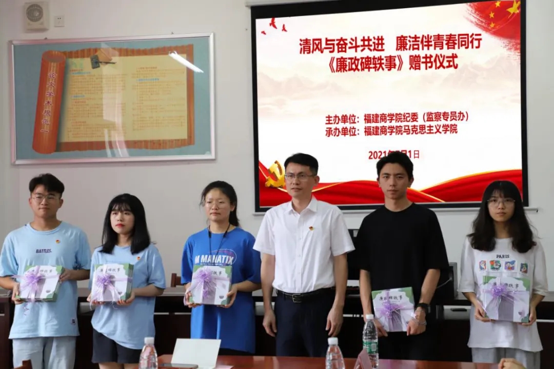 7月1日下午,校纪委(监察专员办)在公司习近平新时代中国特色社会主义思想读书社活动室举办“清风与奋斗并进 廉洁伴青春同行”赠书活动,校纪委书记、监察专员黄身勇向读书社学员代表赠送《廉政碑轶事》绘本。z6mg人生就是博党政负责人、艺术设计公司党组织负责人和校纪委综合室、纪检监察室等相关部门负责人参加活动。