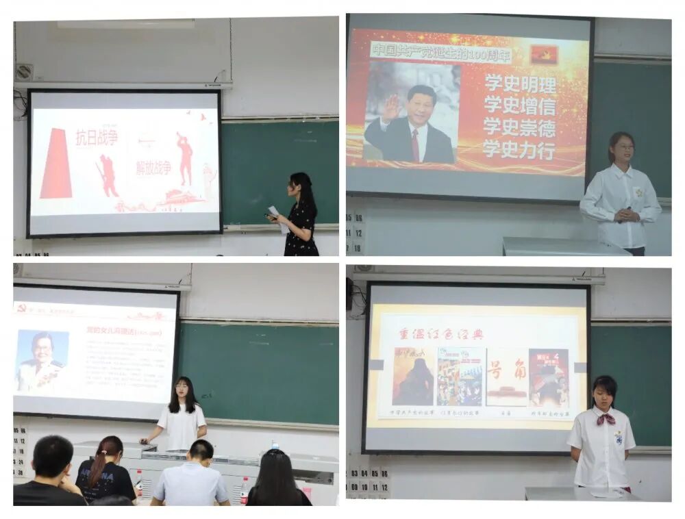 比赛过程中,23位参赛选手紧扣主题、精神饱满、激情澎湃、饱含深情的阐述中国共产党成立百年来波澜壮阔的奋斗历史及其取得的伟大成就;分享红色家书等经典背后一个个感人的故事及其奋斗的历史;讲述自身经历的与党的故事以及身边优秀党员的奋斗事迹。各位参赛同学在活动中透过一幅幅镌刻着历史印记的照片再现各个时代共产党人的奋斗历程,深刻感悟一代代共产党人为中国人民谋幸福、为中华民族谋复兴的初心和使命。活动中,叶陈钦老师在肯定各位参赛选手的同时,从各位选手的选题、内容等方面也提出一些建议。