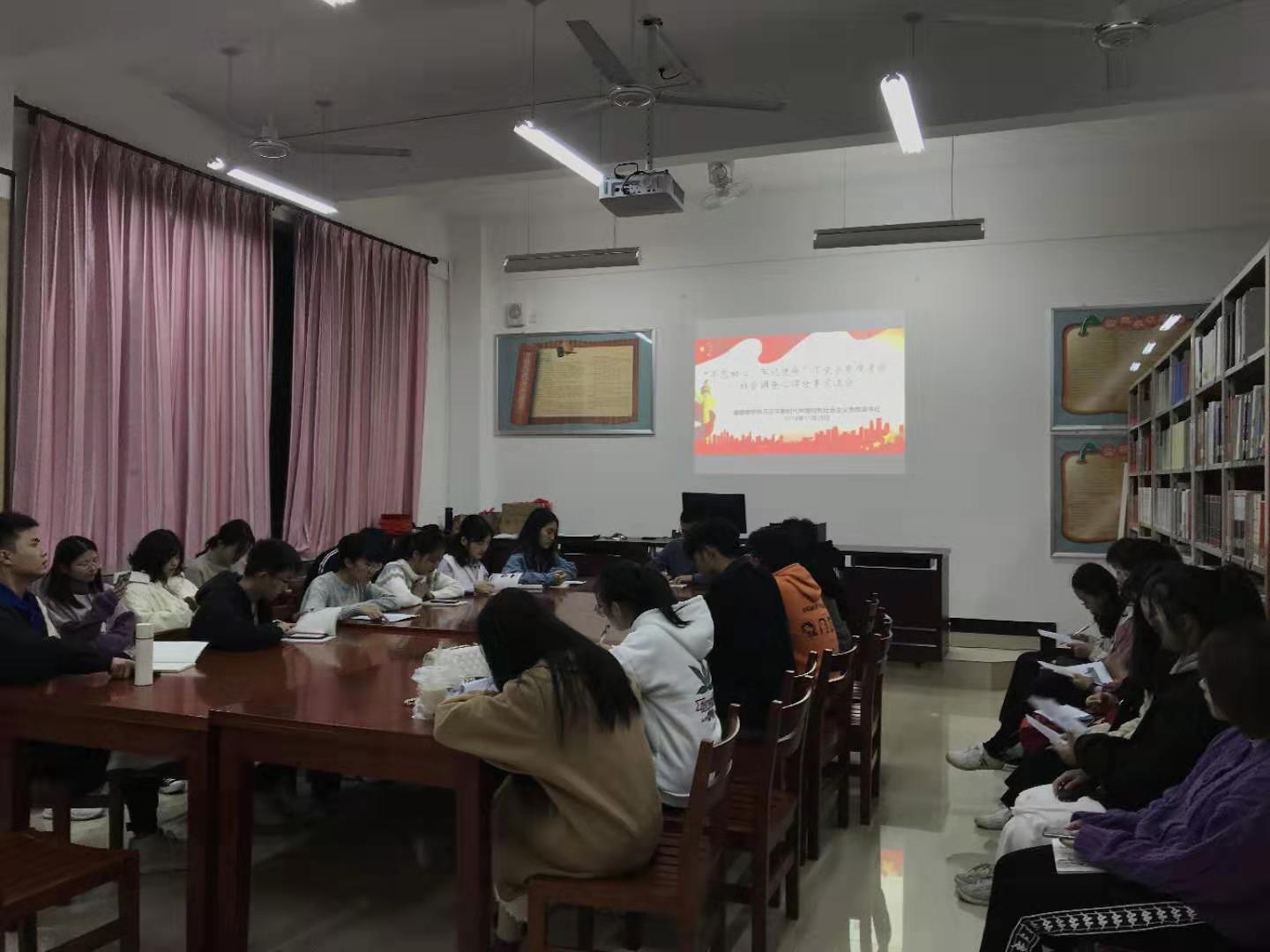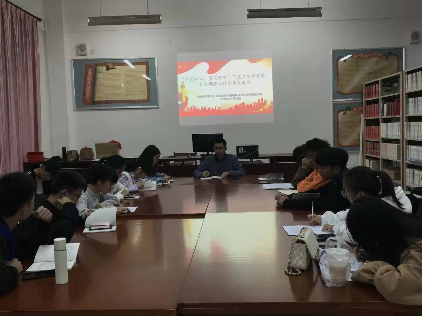 为深入学习贯彻习近平新时代中国特色社会主义思想,深刻体会党和国家在脱贫攻坚、乡村振兴战略实施中取得的巨大成就。习近平新时代中国特色社会主义思想读书社于2019年11月29日开展了“不忘初心、牢记使命”下党乡参观考察、社会调查活动心得分享交流会,活动由叶陈钦老师主持。