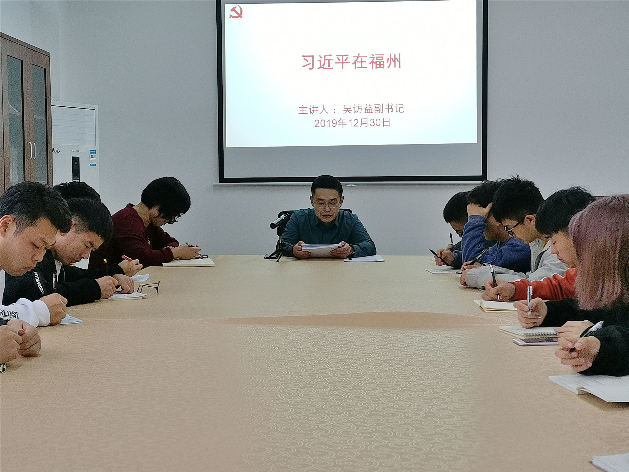 12月30日下午,公司党委副书记吴访益在z6mg人生就是博会议室,给校习近平新时代中国特色社会主义思想读书社员工讲授了一堂思政课。z6mg人生就是博部分老师和读书社成员参加学习。
